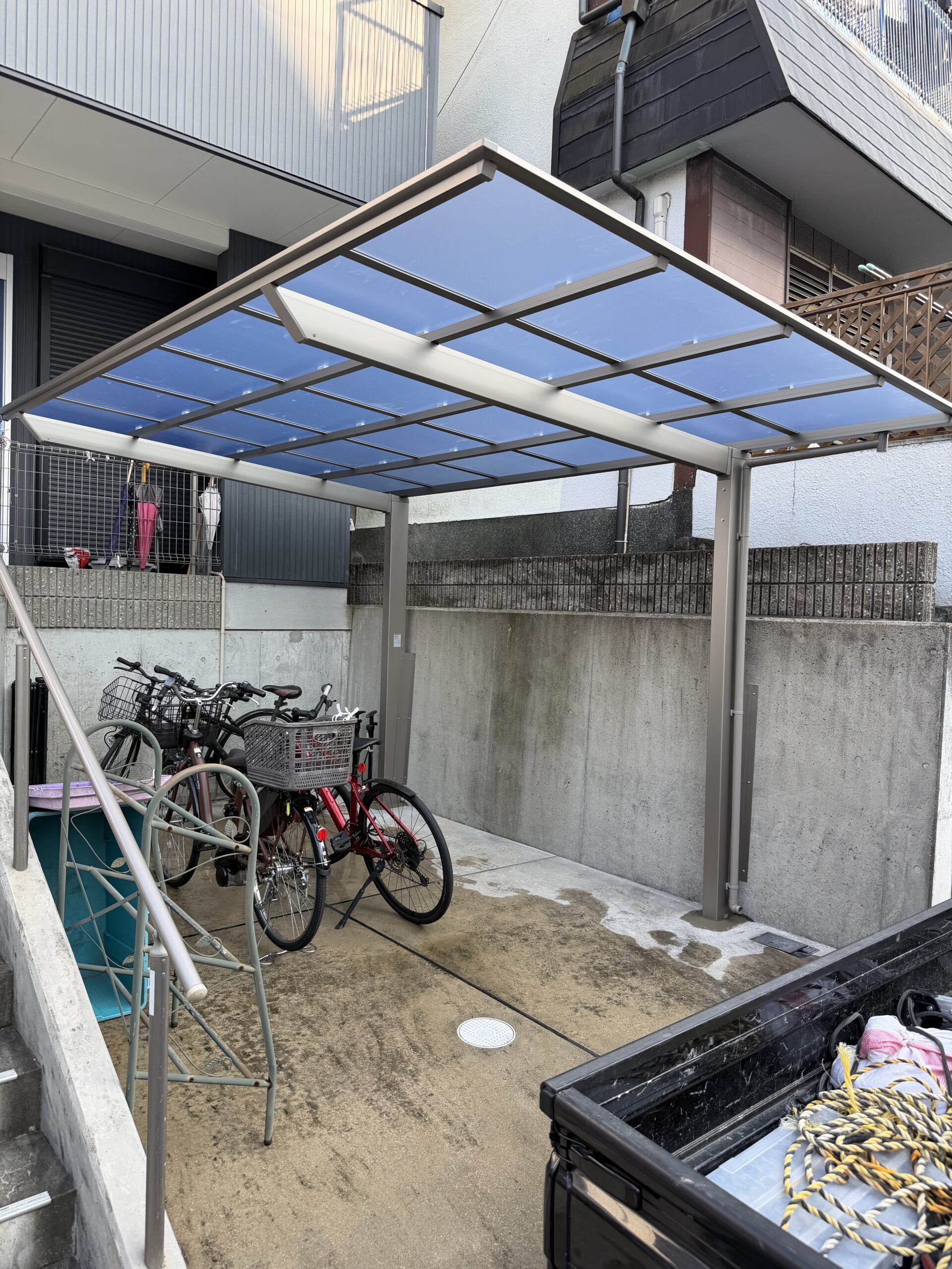 駐車スペースとしてはもちろん、自転車置き場としても非常に使い勝手の良い空間となりました。