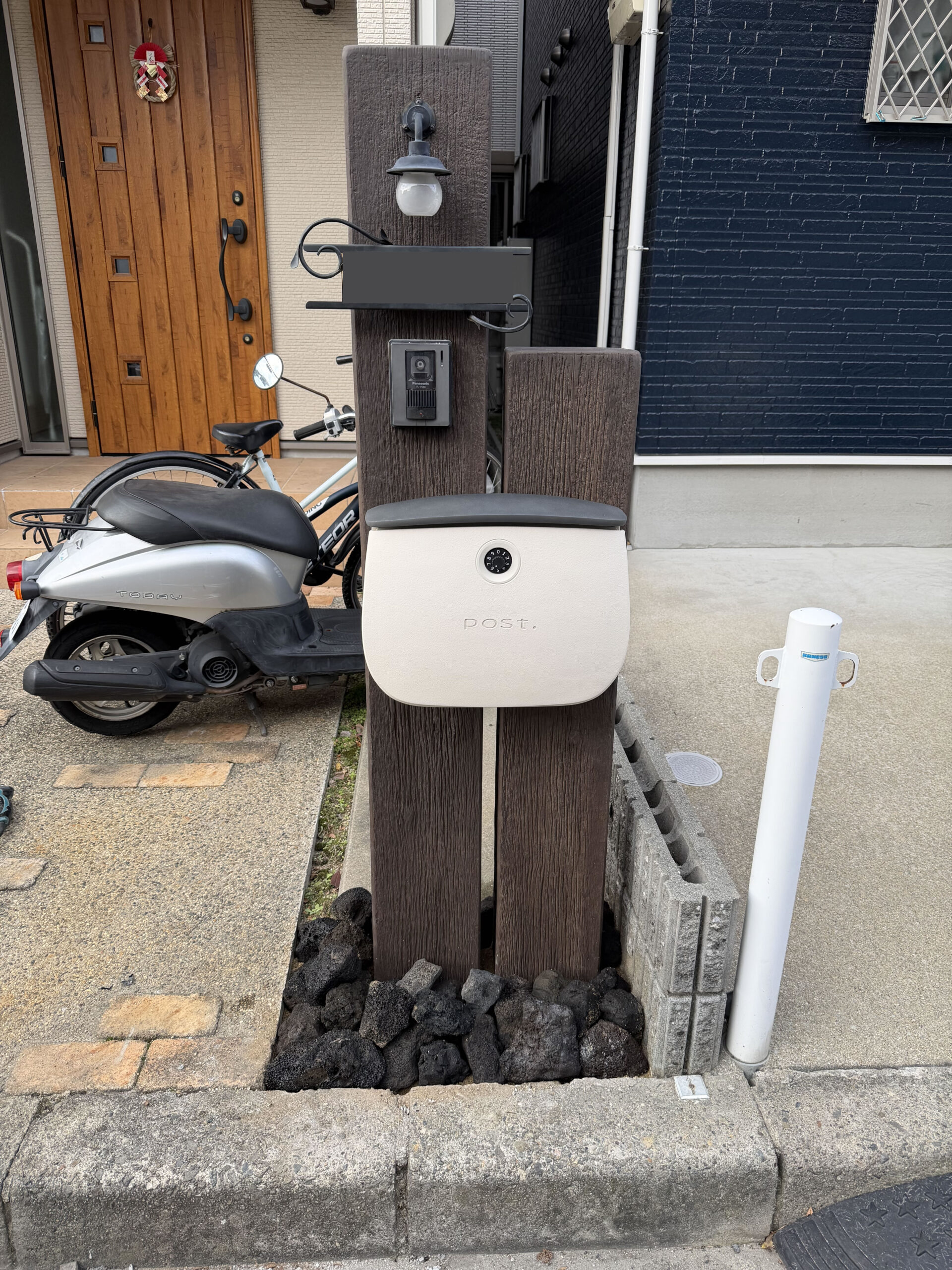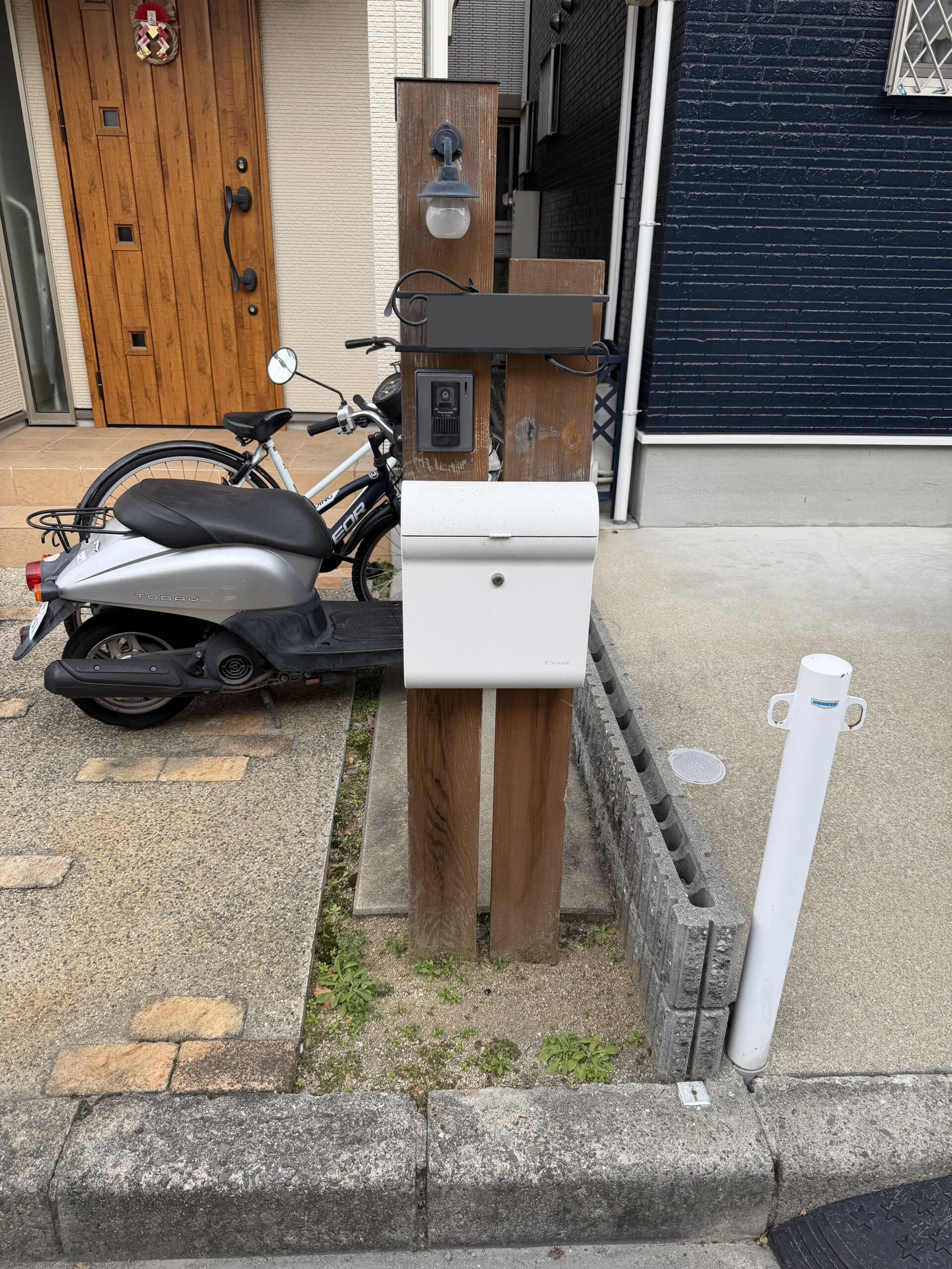 既存の門柱は経年劣化が進み、インターホンやポストの使い勝手も悪くなっていたため、