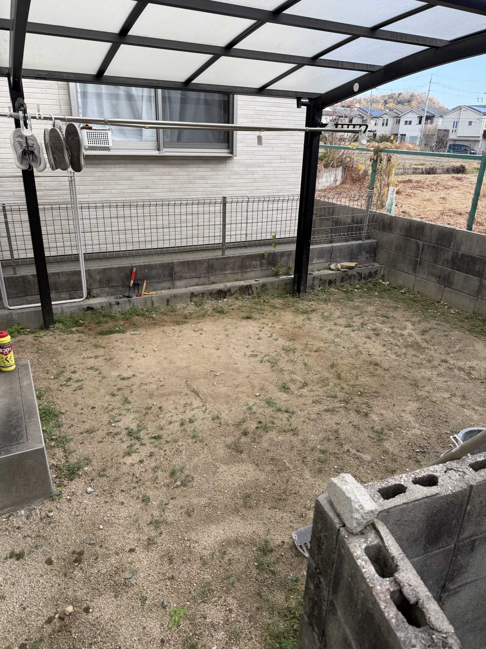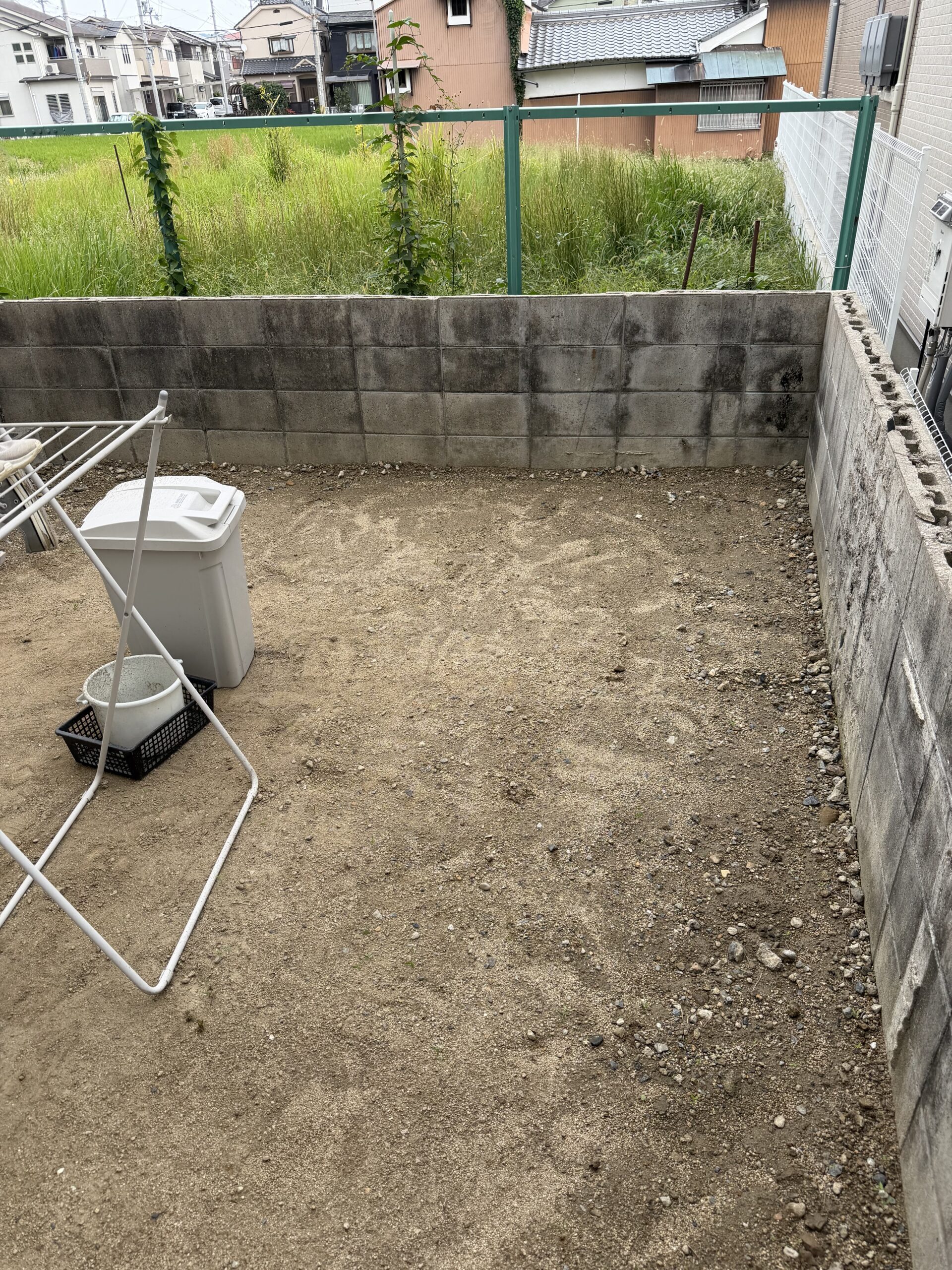 長年使用されていたお庭兼洗濯場は、雑草やぬかるみが気になり、管理が大変な状態でした。