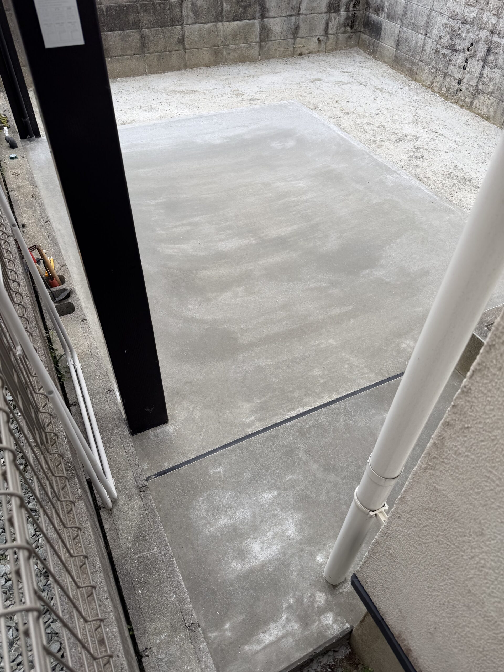 そこで、地盤をしっかり整地したうえでコンクリート舗装を施工し、見た目もスッキリ、使い勝手の良い外構空間へとリフォームしました。